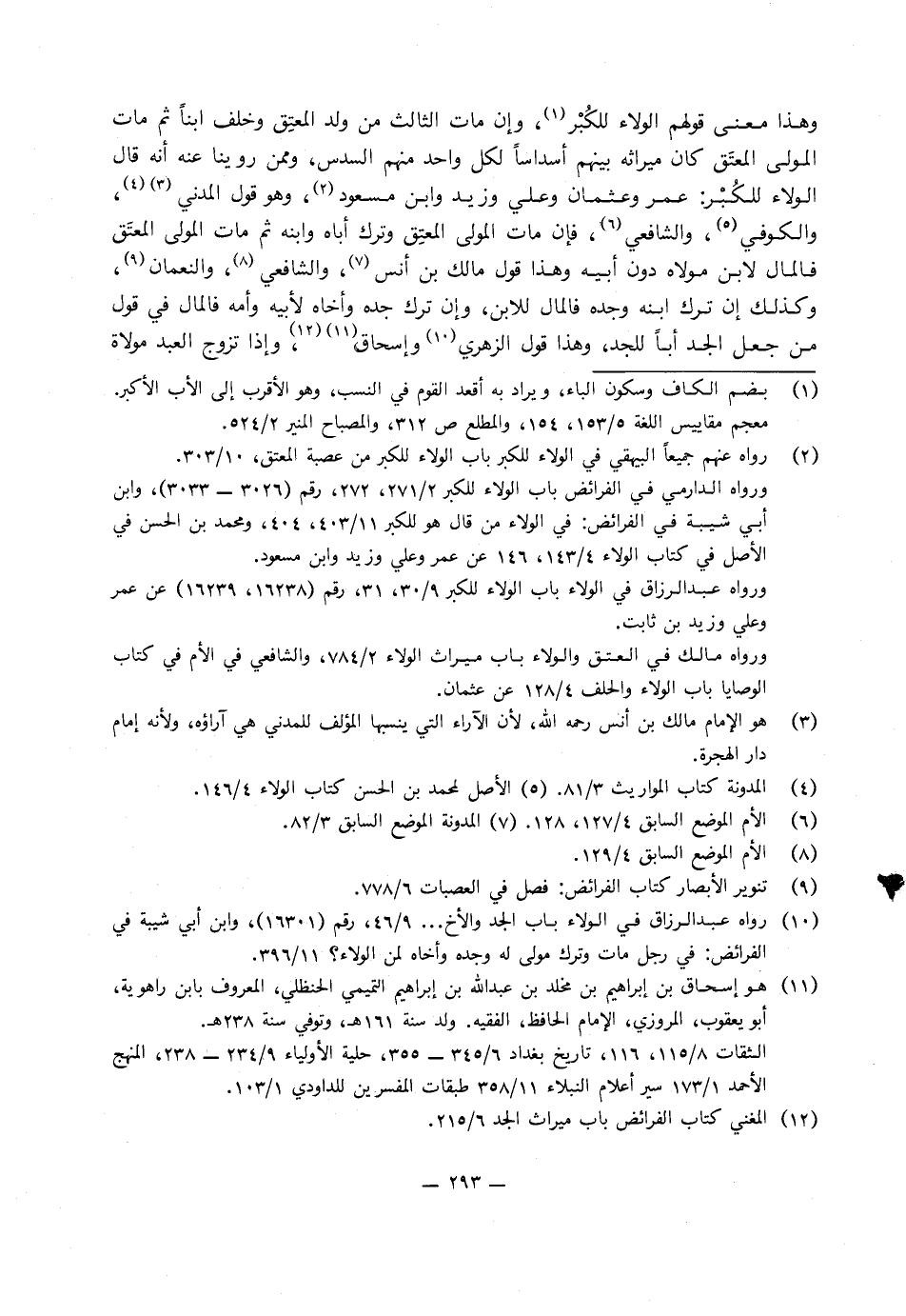 ومن روينا عنه، أنه قَالَ: الولاء للكبر، عمر، وعثمان، وعلي، وزيد، وابن مسعود وهو قول المدني والكوفي والشافعي فإن مات المولى المعتق وترك أباه وابنه ثم مات المولى المعتق، فالمال لابن مولاه دون أَبِيهِ وهذا قول مالك بن أنس، والشافعي، والنعمان، وكذلك إن ترك ابنه وجده فالمال للابن، وإن ترك جده، وأخاه لأبيه، ولأمه، فالمال في قول من جعل الجد أبا للجد، وهكذا قول الزُّهْرِيّ، وإسحاق.
