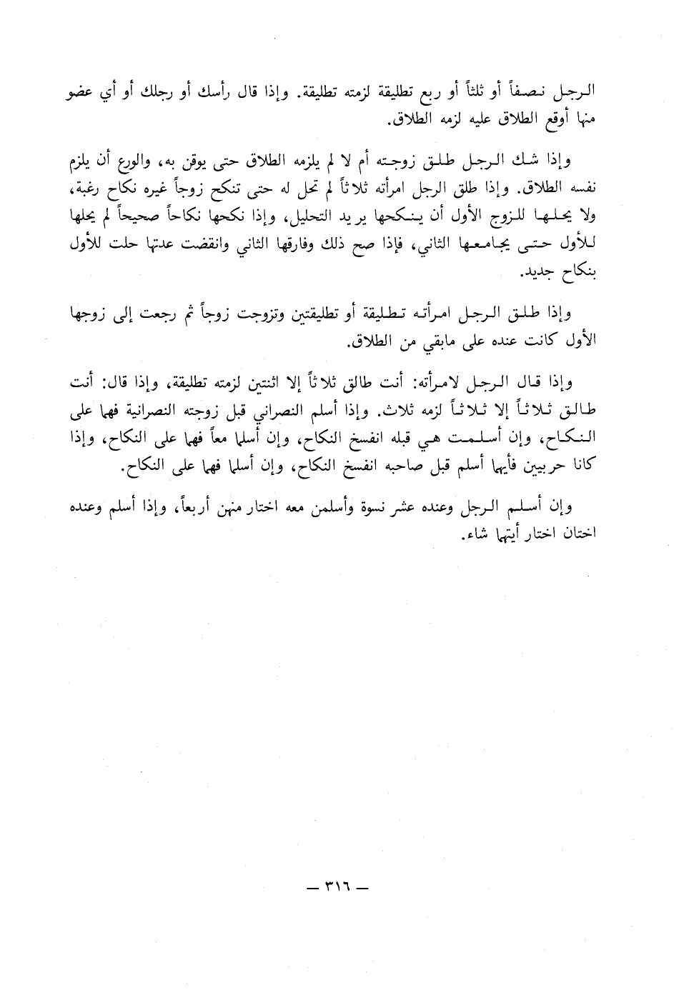 الرجل نصف أو ثلث أو ربع تطليقة لزمته تطليقة، وإذا قَالَ: رأسك أو رجلك أو أي عضو منها أوقع الطلاق عليه لزمه الطلاق، وإذا شك الرجل طلق زوجته أم لا لم يلزمه الطلاق حَتَّى يوقن به، والورع أن يلزم نفسه الطلاق.