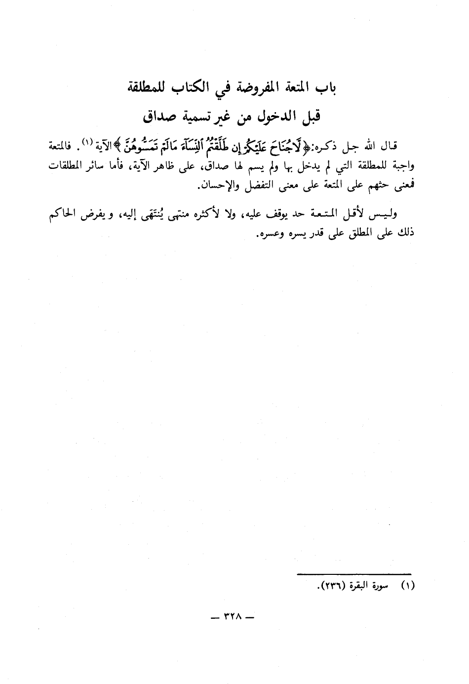 قَالَ اللَّه جل ذكره: {لا جُنَاحَ عَلَيْكُمْ إِنْ طَلَّقْتُمُ النِّسَاءَ مَا لَمْ تَمَسُّوهُنَّ} [البقرة: 236] .