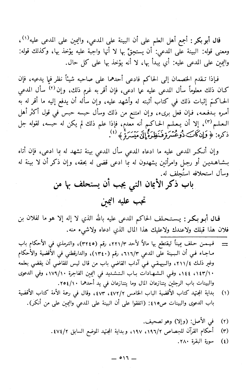 أجمع أهل العلم عَلَى أن البينة عَلَى المدعي واليمين عَلَى المدعى عليه.