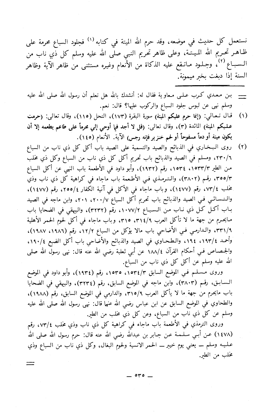 نستعمل كل حديث فِي موضعه، وقد حرم اللَّه الميتة فِي كتابه، فجلود السباع محرمة عَلَى ظاهر تحريم اللَّه الميتة، وعلى ظاهر تحريم النَّبِيّ صَلَّى اللَّهُ عَلَيْهِ وَسَلَّمَ كل ذي ناب من السباع، وجلود مَا تقع عليه الذكاة من الأنعام وغيره مستثنى من ظاهر الآية، وظاهر السنة إذا دبغت بخبر ميمونة.