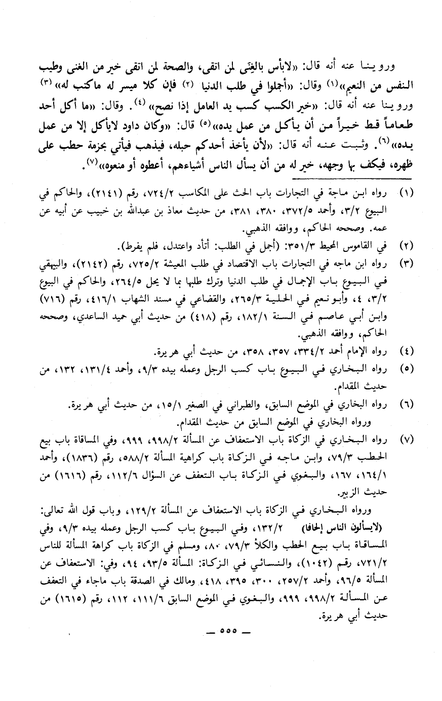 وثبت عَنْهُ، أنه قَالَ: «لأن يأخذ أحدكم حبله فيذهب فيأتي بحزمة حطب عَلَى ظهره فيكف بها وجهه خير لَهُ من أن يسأل الناس أشياء أعطوه أو منعوه» .