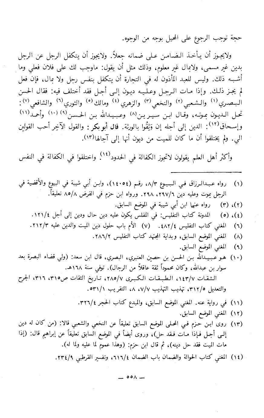 وأكثر أهل العلم، يقولون: لا تجوز الكفالة فِي الحدود، واختلفوا فِي الكفالة فِي النفس،