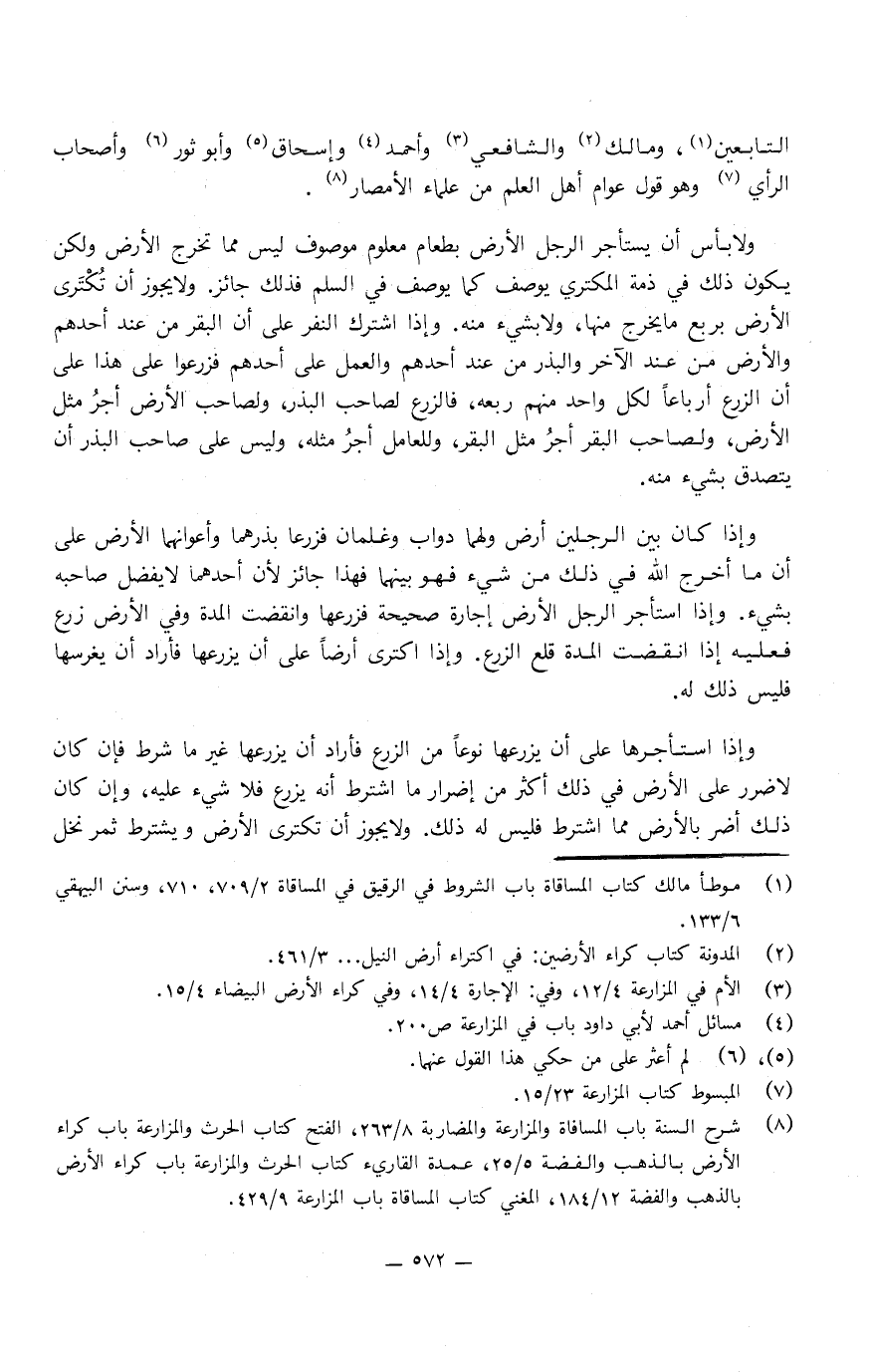 وَلا بأس أن يستأجر الرجل الأرض بطعام معلوم موصوف ليس مما تخرج الأرض، ولكن يكون ذَلِكَ فِي ذمة المكتري يوصف كما يوصف فِي السلم فذلك جائز، وَلا يجوز أن تكترى الأرض بربع مَا يخرج منها وَلا بشيء منه.