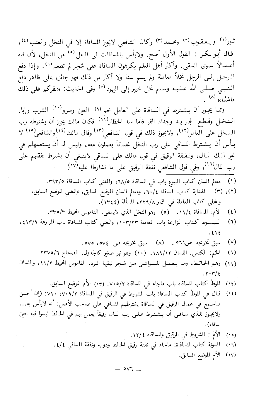 ومما يجوز أن يشترط فِي المساقاة عَلَى العامل خم العين وسرو الشرب، وإبار النخل، وقطع الجريد وجداد التمر، فأما سد الحظار فكان مالك يجيز أن يشترطه رب النخل عَلَى العامل، وَلا يجوز فِي قول الشَّافِعِيّ، وقال مالك، والشافعي: لا بأس أن يشترط المساقاة عَلَى رب النخل غلمانا يعملون مَعَهُ وليس لَهُ أن يستعملهم فِي غير ذَلِكَ المال.