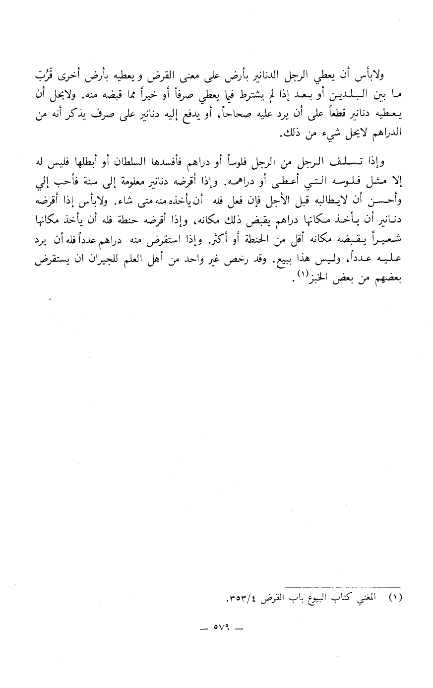 وَلا بأس أن يعطي الرجل الدنانير بأرض عَلَى معنى القرض ويعطيه بأرض أخرى قرب مَا بين البلدين أو بعد إذا لم يشترط فيما يعطي صرفا أو خيرا مما قبضه منه، وَلا يحل أن يعطيه دنانير قطعا عَلَى أن يرد عليه صحاحا أو يدفع إليه دنانير عَلَى صرف يذكر أنه من الدراهم، لا يحل شيء من ذَلِكَ.