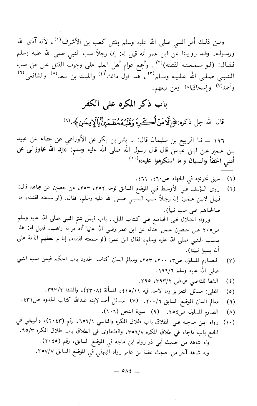 وَمِنْ ذَلِكَ أَمَرَ النَّبِيُّ صَلَّى اللَّهُ عَلَيْهِ وَسَلَّمَ بِقَتْلِ كَعْبِ بْنِ الأَشْرَفِ، لأَنَّهُ آذَى اللَّهَ وَرَسُولَهُ