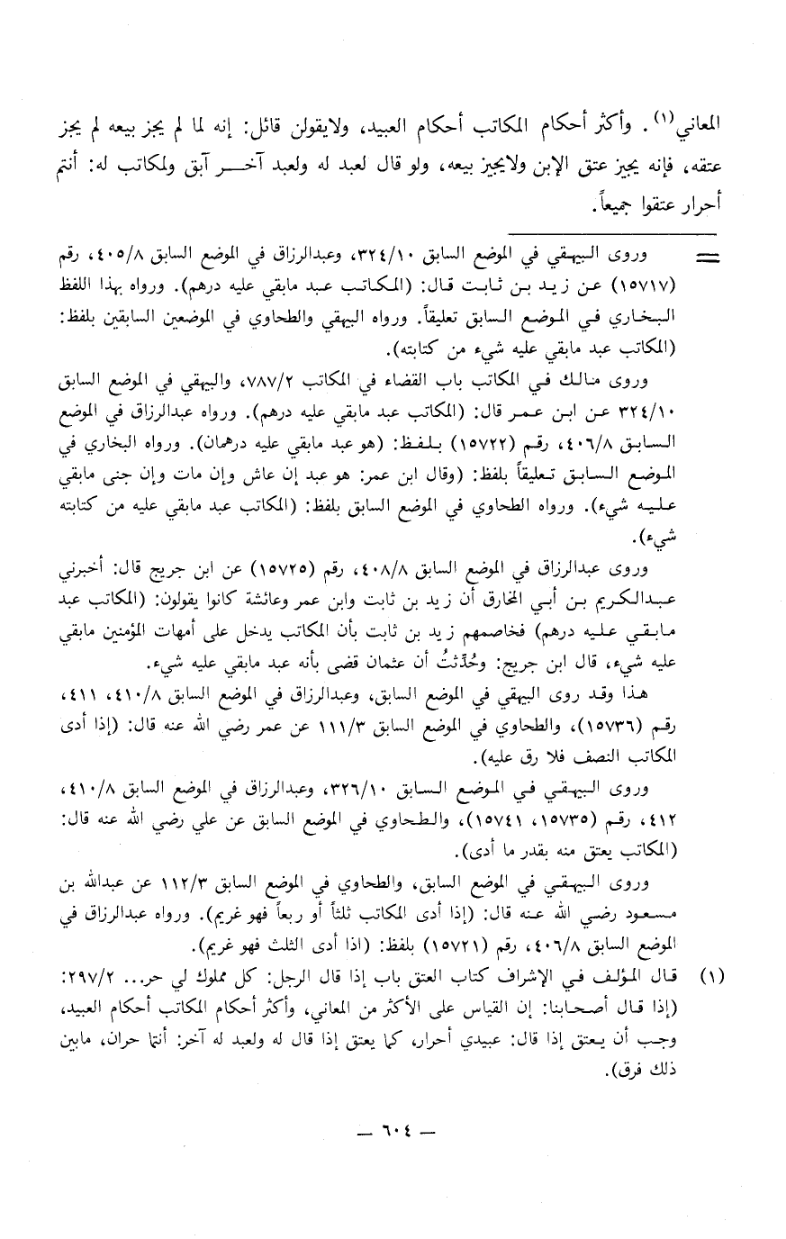 وأكثر أحكام المكاتب أحكام العبيد، وَلا يقولن قائل إنه لما لم يجز بيعه لم يجز عتقه، فإنه يجيز عتق الآبق وَلا يجيز بيعه، ولو قَالَ لعبد لَهُ، ولعبد آخر آبق، ولمكاتب لَهُ: أنتم أحرار.