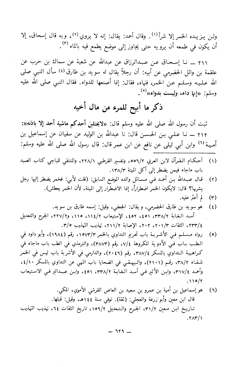 211 - نا إِسْحَاقُ، عَنْ عَبْدِ الرَّزَّاقِ، عَنْ عَبْدِ اللَّهِ، عَنْ شُعْبَةَ، عَنْ سِمَاكِ بْنِ حَرْبٍ، عَنْ عَلْقَمَةَ بْنِ وَائِلٍ الْحَضْرَمِيِّ، عَنْ أَبِيهِ، أَنَّ رَجُلا يُقَالُ لَهُ: سُوَيْدُ بْنُ طَارِقٍ سَأَلَ النَّبِيَّ صَلَّى اللَّهُ عَلَيْهِ وَسَلَّمَ عَنِ الْخَمْرِ فَنَهَى عَنْهَا، فَقَالَ: إِنِّي أَصْنَعُهَا لِلدَّوَاءِ.
