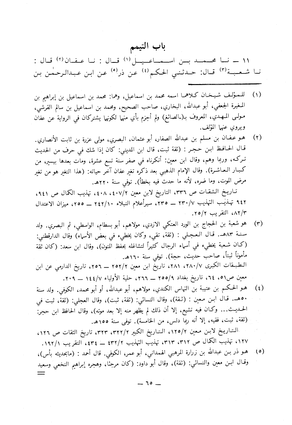 11 - نا مُحَمَّدُ بْنُ إِسْمَاعِيلَ، قَالَ: نا عَفَّانُ، قَالَ: نا شُعْبَةُ، قَالَ: حَدَّثَنِي الْحَكِيمُ، عَنْ ذَرٍّ، عَنِ ابْنِ عَبْدِ الرَّحْمَنِ بْنِ