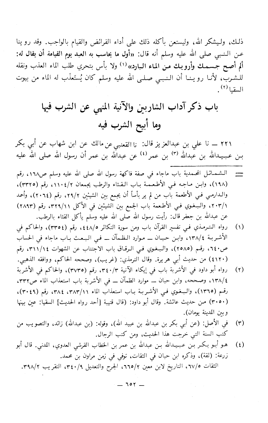 221 - نا عَلِيُّ بْنُ عَبْدِ الْعَزِيزِ، قَالَ: نا الْقَعْنَبِيُّ عَن مَالِكٍ، عَنِ ابْنِ شِهَابٍ، عَنْ أَبِي بَكْرِ بْنِ عُبَيْدِ اللَّهِ بْنِ عَبْدِ اللَّهِ بْنِ عُمَرَ، عَنْ جَدِّهِ ابْنِ عُمَرَ، أَنَّ رَسُولَ اللَّهِ صَلَّى اللَّهُ عَلَيْهِ