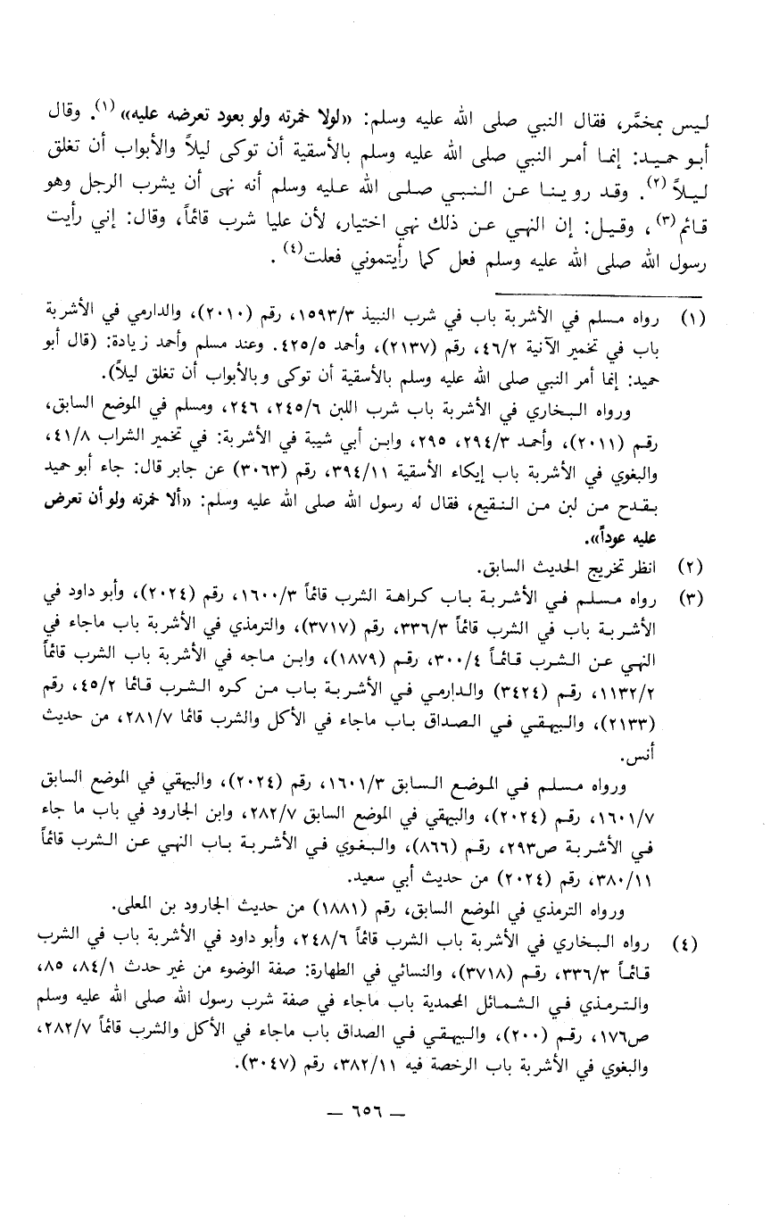 وقد روينا عَنِ النَّبِيِّ صَلَّى اللَّهُ عَلَيْهِ وَسَلَّمَ، أنه «نهى أن يشرب الرجل وهو قائم» ، وقيل: إن النهي عن ذَلِكَ نهي اختيار، لأن عليا شرب قائما، قَالَ: إني رأيت رَسُول اللَّهِ صَلَّى اللَّهُ عَلَيْهِ وَسَلَّمَ فعل كما رأيتموني فعلت.