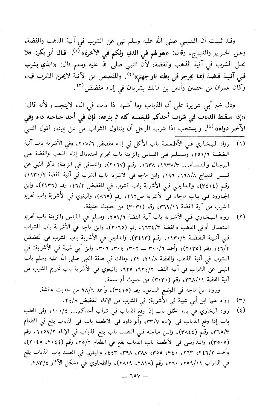 وقد ثبت أن نبي اللَّه صَلَّى اللَّهُ عَلَيْهِ وَسَلَّمَ «نهى عن الشرب فِي آنية الذهب والفضة، وعن الحرير والديباج» ، وقال: «هو لهم فِي الدُّنْيَا، ولكم فِي الآخرة» .