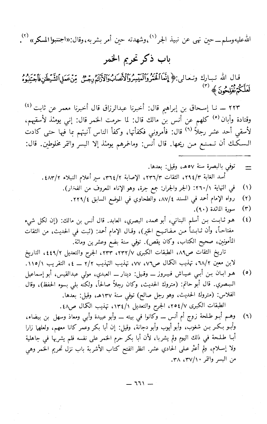 223 - نا إِسْحَاقُ بْنُ إِبْرَاهِيمَ، قَالَ: أَخْبَرَنَا عَبْدُ الرَّزَّاقِ، قَالَ: أَخْبَرَنَا مَعْمَرٌ، عَنْ ثَابِتٍ، وَقَتَادَةَ، وَأَبَانٍ، كُلِّهِمْ، عَنْ أَنَسِ بْنِ مَالِكٍ، قَالَ: لَمَّا حُرِّمَتِ الْخَمْرُ، قَالَ أَبِي يَوْمَئِذٍ: لأَسْقِيهِمْ، لأَسْقِي أَحَدَ عَشَرَ رَجُلا.