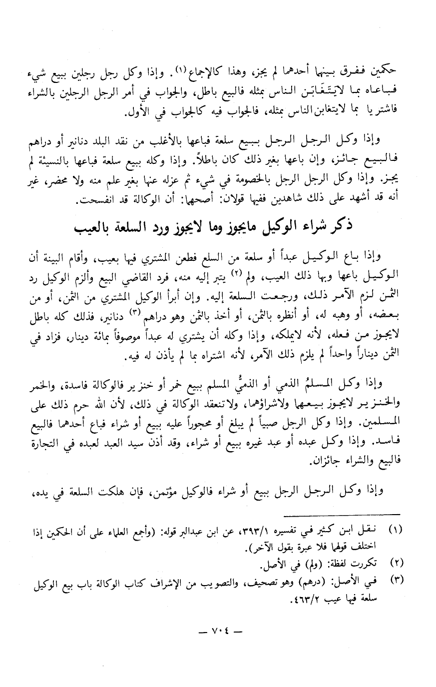 باب ذكر شراء الوكيل مَا يجوز وما لا يجوز ورد السلعة بالعيب