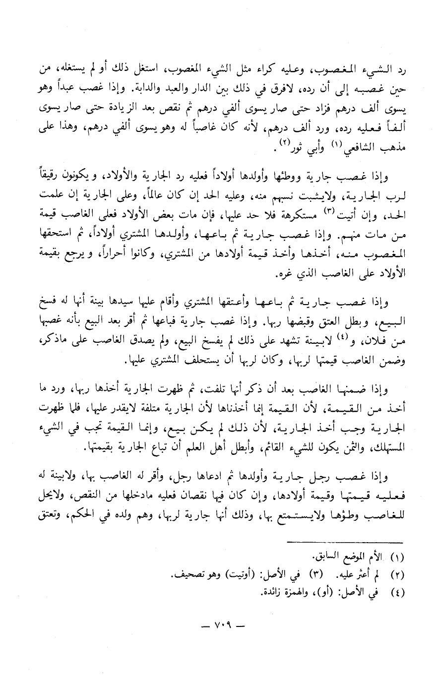 رد الشيء المغصوب، وعليه كراء مثل الشيء المغصوب، استغل ذَلِكَ أو لم يستغله من حين غصبه إِلَى أن رده، لا فرق فِي ذَلِكَ بين الدار والعبد والدابة، وإذا غصب عبدًا وهو يسوى ألف درهم فزاد حَتَّى صار يسوى ألفي درهم، ثم نقص بعد الزيادة حَتَّى صار يسوى ألفا فعليه رده، ورد ألف درهم، لأنه كَانَ غاصبًا لَهُ وهو يسوى ألفي درهم، وهذا عَلَى مذهب الشَّافِعِيّ، وأبي ثور.