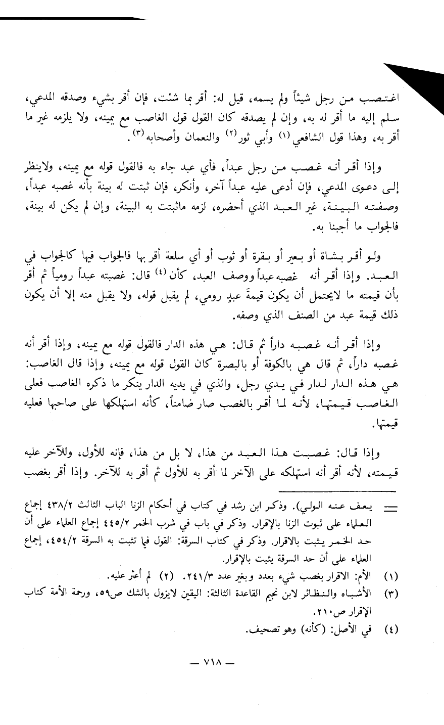 وإذا أقر أنه غصب من رجل عبدًا فأي عبد جَاءَ به فالقول قوله مع يمينه، وَلا ينظر إِلَى دعوى المدعي، فإن ادعى عبدًا آخر وأنكر، فإن ثبتت لَهُ بينة بأنه غصبه عبدًا وصفته البينة غير العبد الذي أحضره لزمه مَا تثبت به البينة، وإن لم تكن لَهُ بينة، فالجواب مَا أجبنا به، ولو أقر بشاة أو بعير أو بقرة أو ثوب أو أي سلعة أقر بها، فالجواب فيها كالجواب فِي العبد.