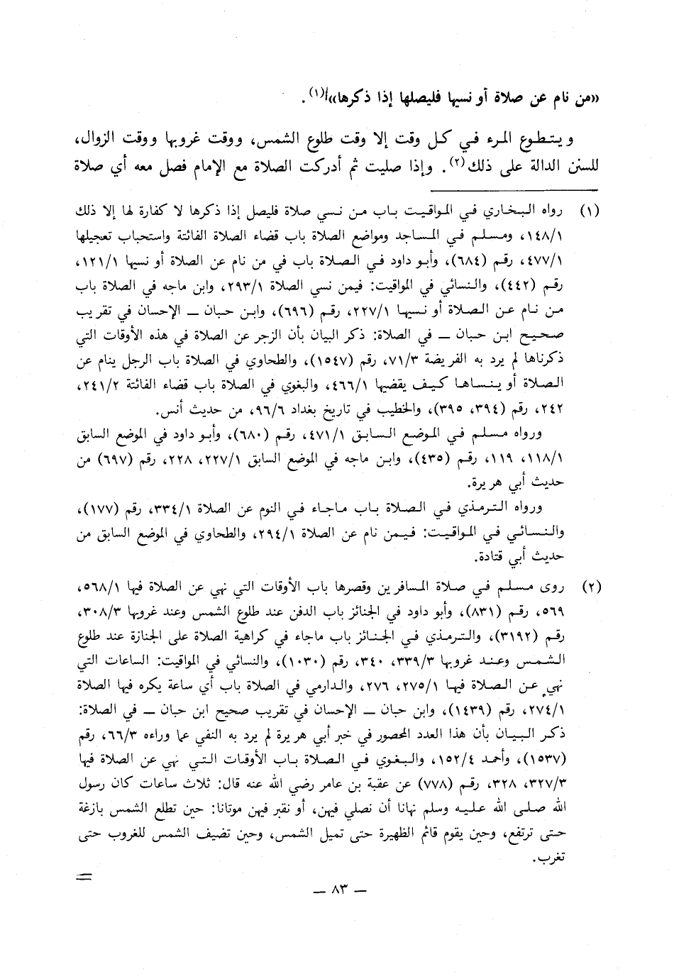 «من نام عن صلاة أو نسيها فليصلها إذا ذكرها» .