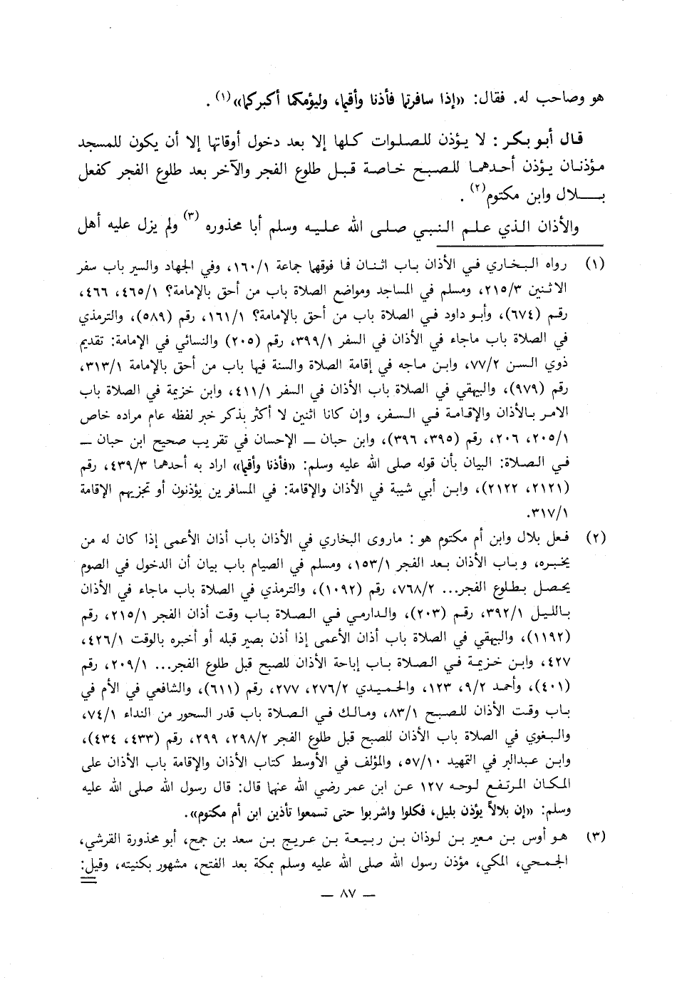 والأذان الذي علم النَّبِيّ صَلَّى اللَّهُ عَلَيْهِ وَسَلَّمَ أبا محذورة ولم يزل عليه أهل