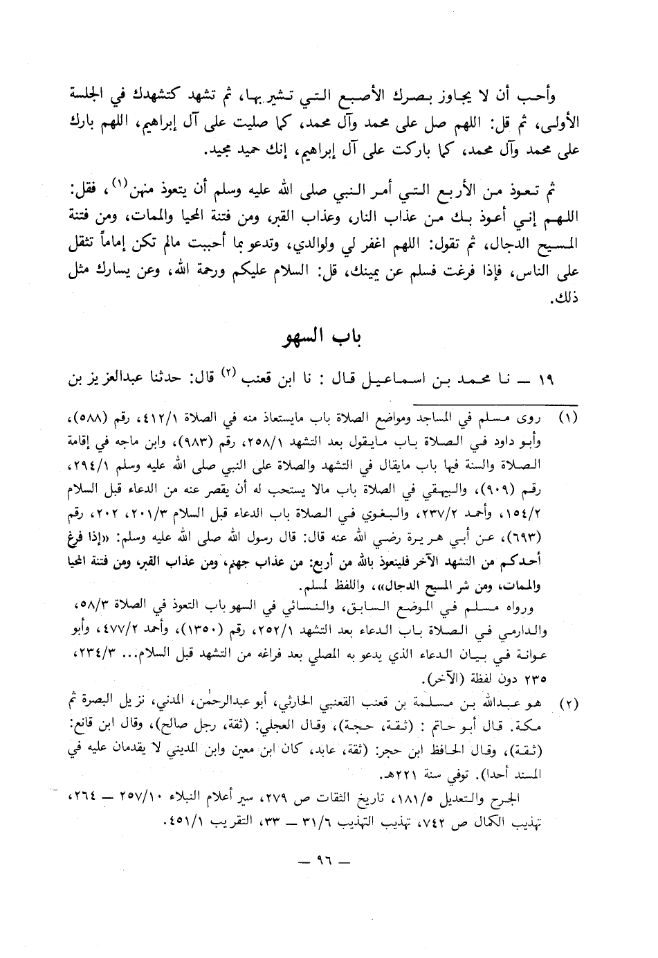 19 - نا مُحَمَّدُ بْنُ إِسْمَاعِيلَ، قَالَ: نا ابْنُ قَعْنَبٍ، قَالَ: حَدَّثَنَا عَبْدُ الْعَزِيزِ بْنُ