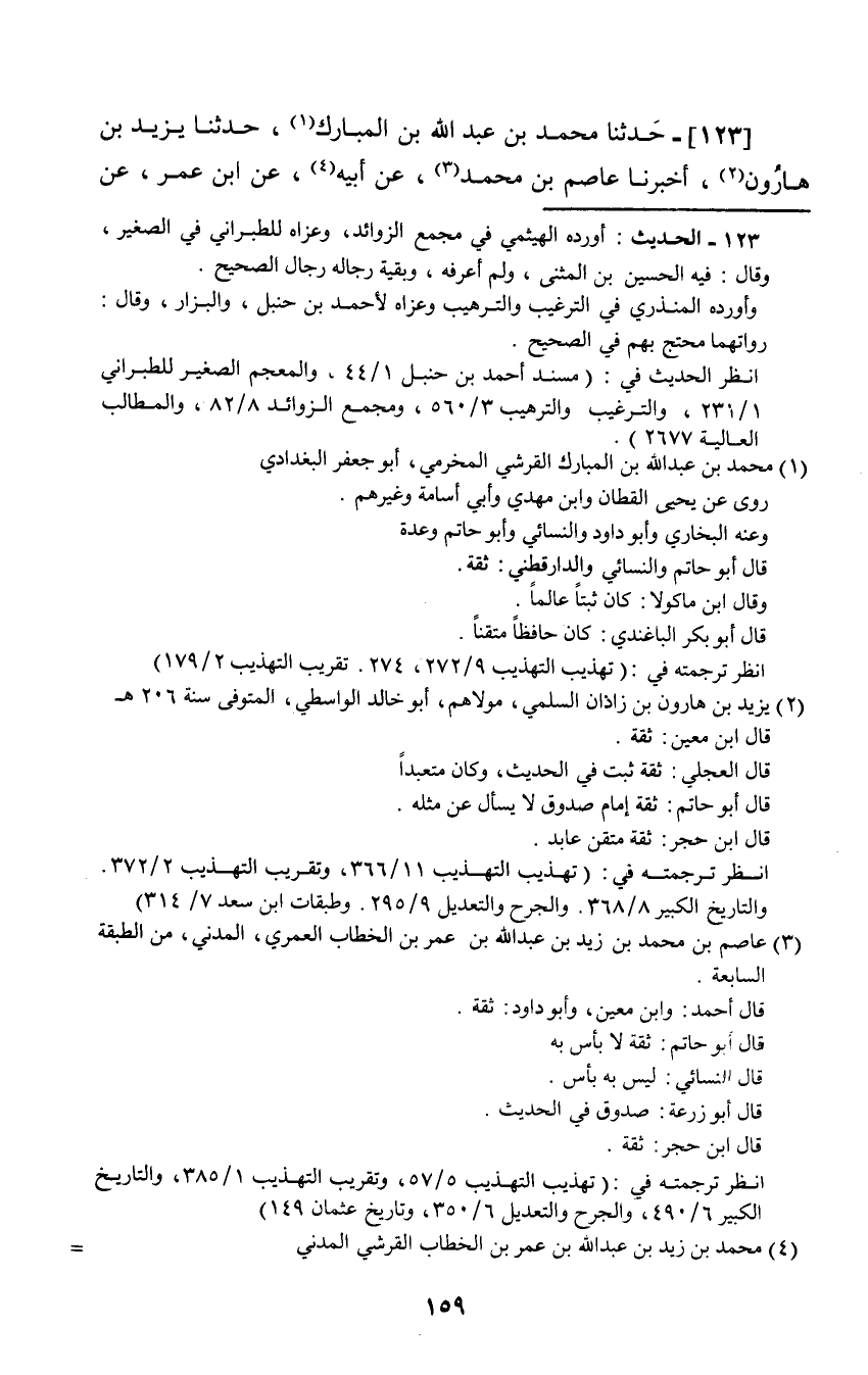 123 - حَدَّثَنَا مُحَمَّدُ بْنُ عَبْدِ اللَّهِ بْنِ الْمُبَارَكِ، حَدَّثَنَا يَزِيدُ بْنُ هَارُونَ، أَخْبَرَنَا عَاصِمُ بْنُ مُحَمَّدٍ، عَنْ أَبِيهِ، عَنِ ابْنِ عُمَرَ، عَنْ عُمَرَ قَالَ يَزِيدُ: لَا أَعْلَمُهُ إِلَّا رَفَعَهُ قَالَ: قَالَ اللَّهُ تَعَالَى «§مَنْ تَوَاضَعَ لِي هَكَذَا رَفَعْتُهُ هَكَذَا» قَالَ أَبُو بَكْرٍ: هَذَا حَدِيثٌ غَرِيبٌ