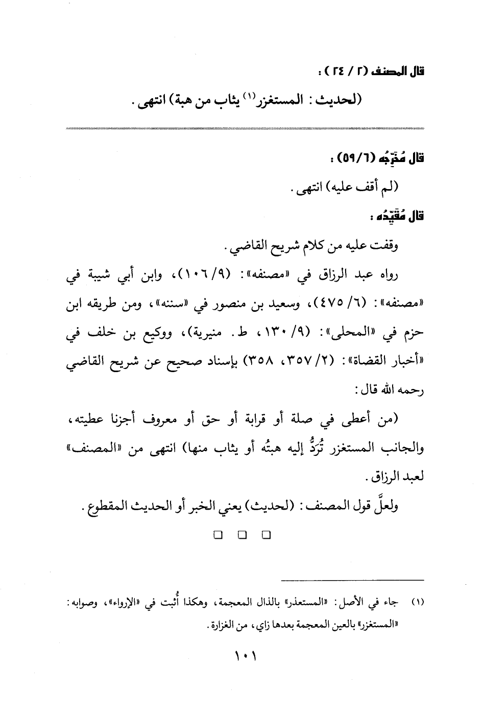 (1) جاء في الأصل: " المستعذر" بالذال المعجمة، وهكذا أُثبت في " الإرواء " وصوابه: " المستغزر " بالعين المعجمة بعدها زاي، من الغزارة.