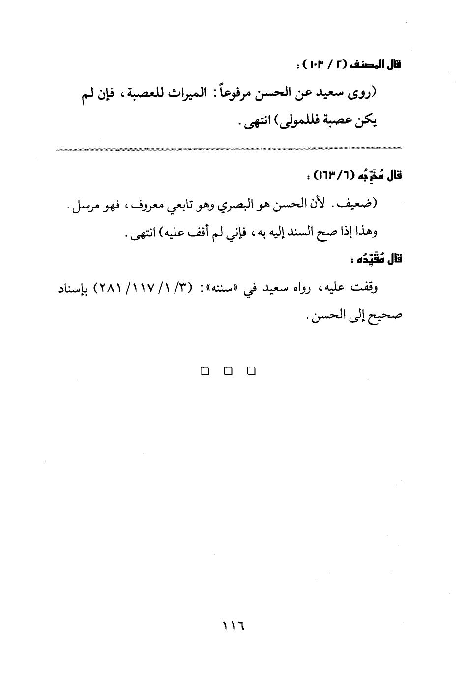 (روى سعيد عن الحسن مرفوعاً: الميراث للعصبة، فإن لم يكن عصبة فللمولى) انتهى.