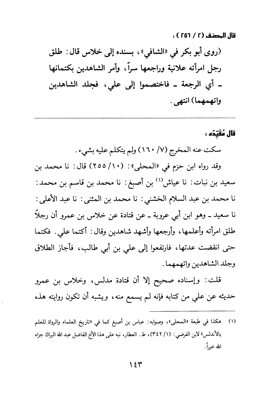 (1) هكذا في طبعة " المحلى " وصوابه: عباس بن أصبغ كما في " تاريخ العلماء والرواة للعلم بالأندلس " لابن الفرضي: (1/342) ط العطار، نبه على هذا الأخ الفاضل عبد الله البراك جزاه الله خيراً.
