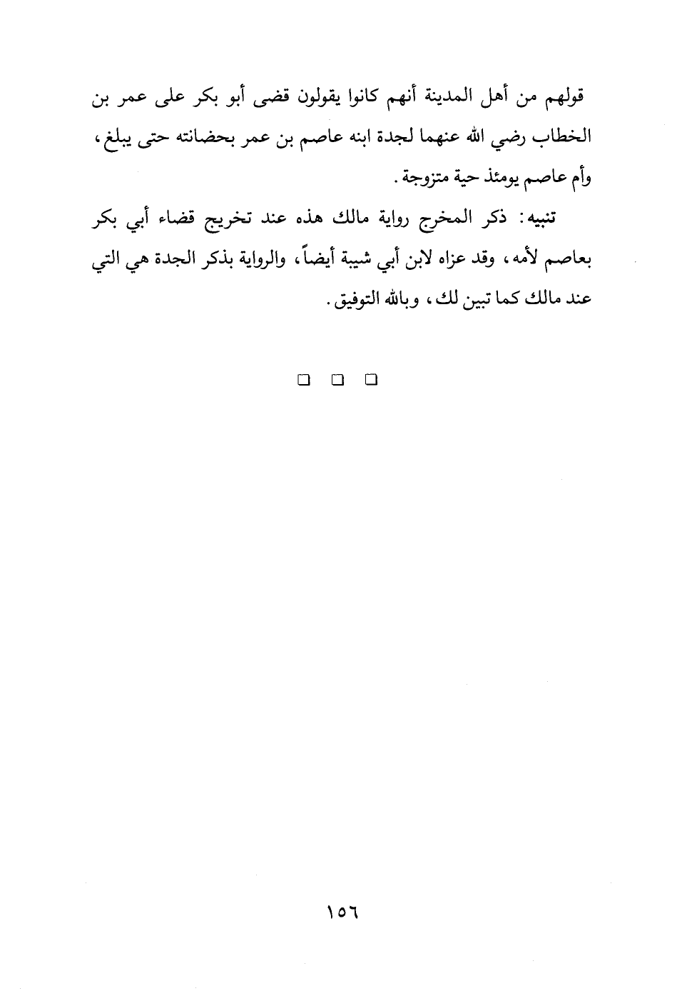تنبيه: ذكر المخرج رواية مالك هذه عند تخريج قضاء أبي بكر بعاصم لأمه، وقد عزاه لابن أبي شيبة أيضاً والرواية بذكر الجدة هي التي عند مالك كما تبين لك، وبالله التوفيق.