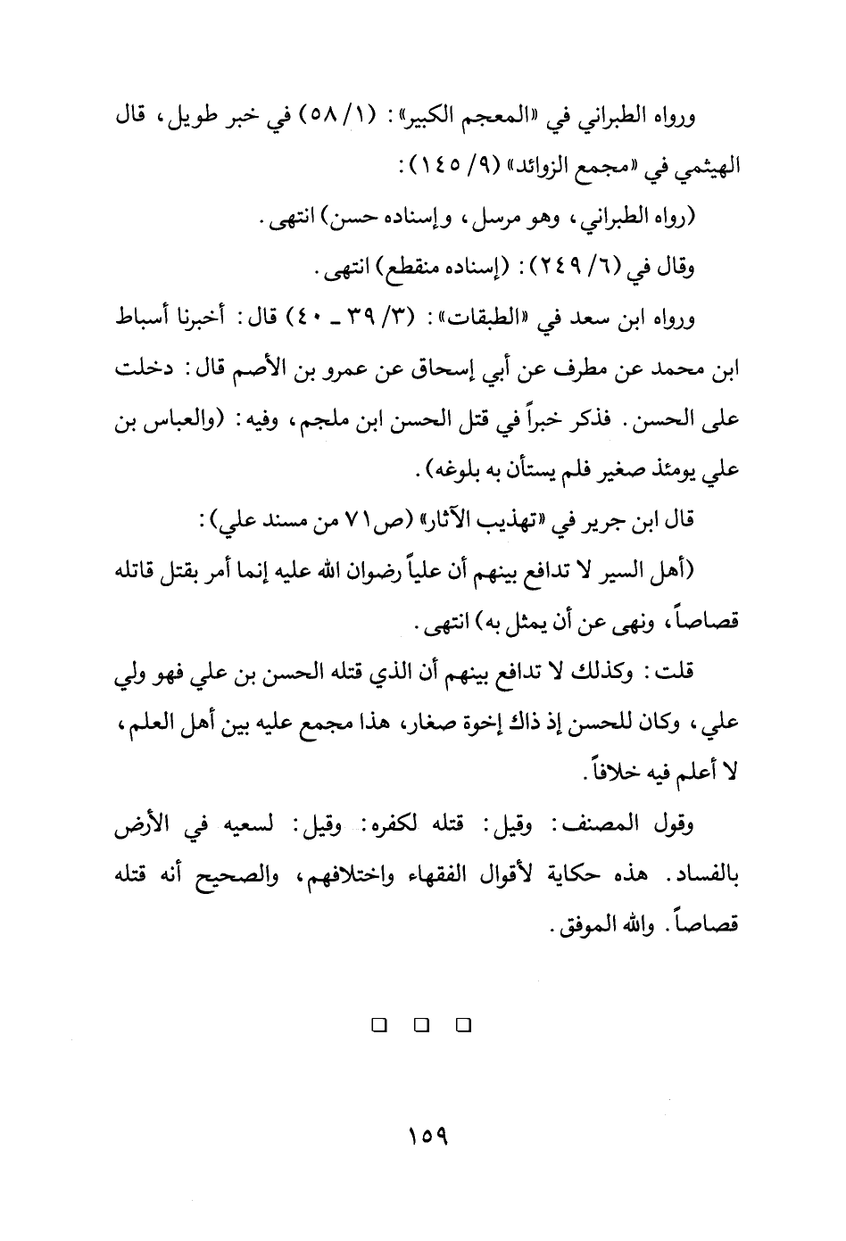 قلت: وكذلك لا تدافع بينهم أن الذي قتله الحسن بن علي فهو ولي علي، وكان للحسن إذا ذاك إخوة صغار، هذا مجمع عليه بين أهل العلم، لا أعلم فيه خلافاً.