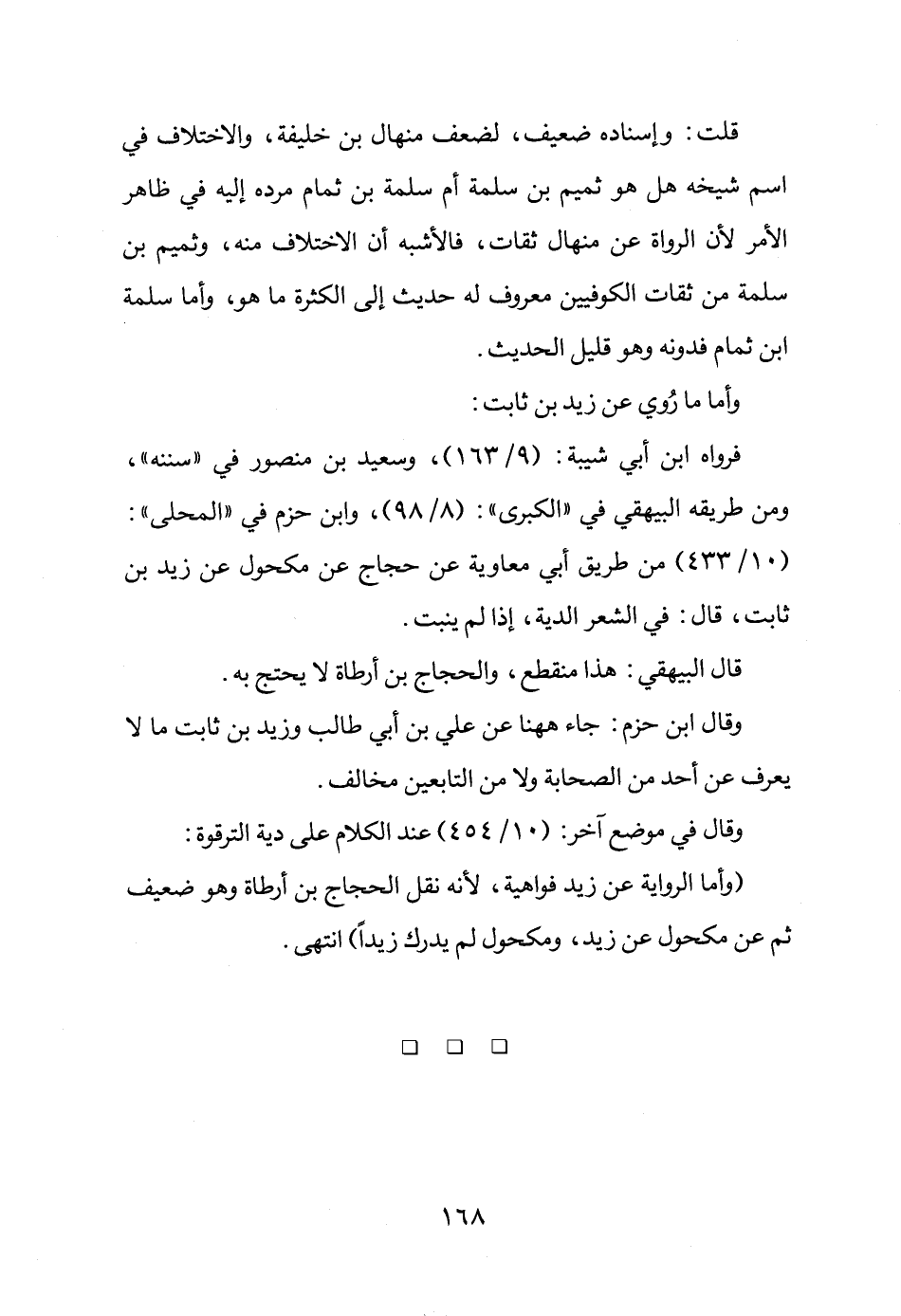 (وأما الرواية عن زيد فواهية، لأنه نقل الحجاج بن أرطاة وهو ضعيف ثم عن مكحول عن زيد، ومكحول لم يدرك زيداً) انتهى.