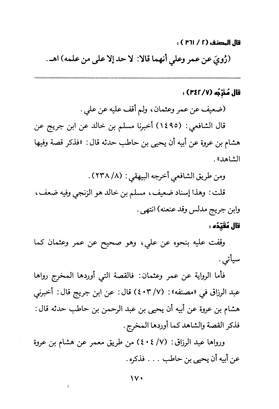 فأما الرواية عن عمر وعثمان: فالقصة التي أوردها المخرج رواها عبد الرزاق في " مصنفه " (7/304) قال: عن ابن جريج قال: أخبرني هشام بن عروة عن أبيه أن يحيى بن عبد الرحمن بن حاطب حدثه قال: فذكر القصة والشاهد كما أوردها المخرج.