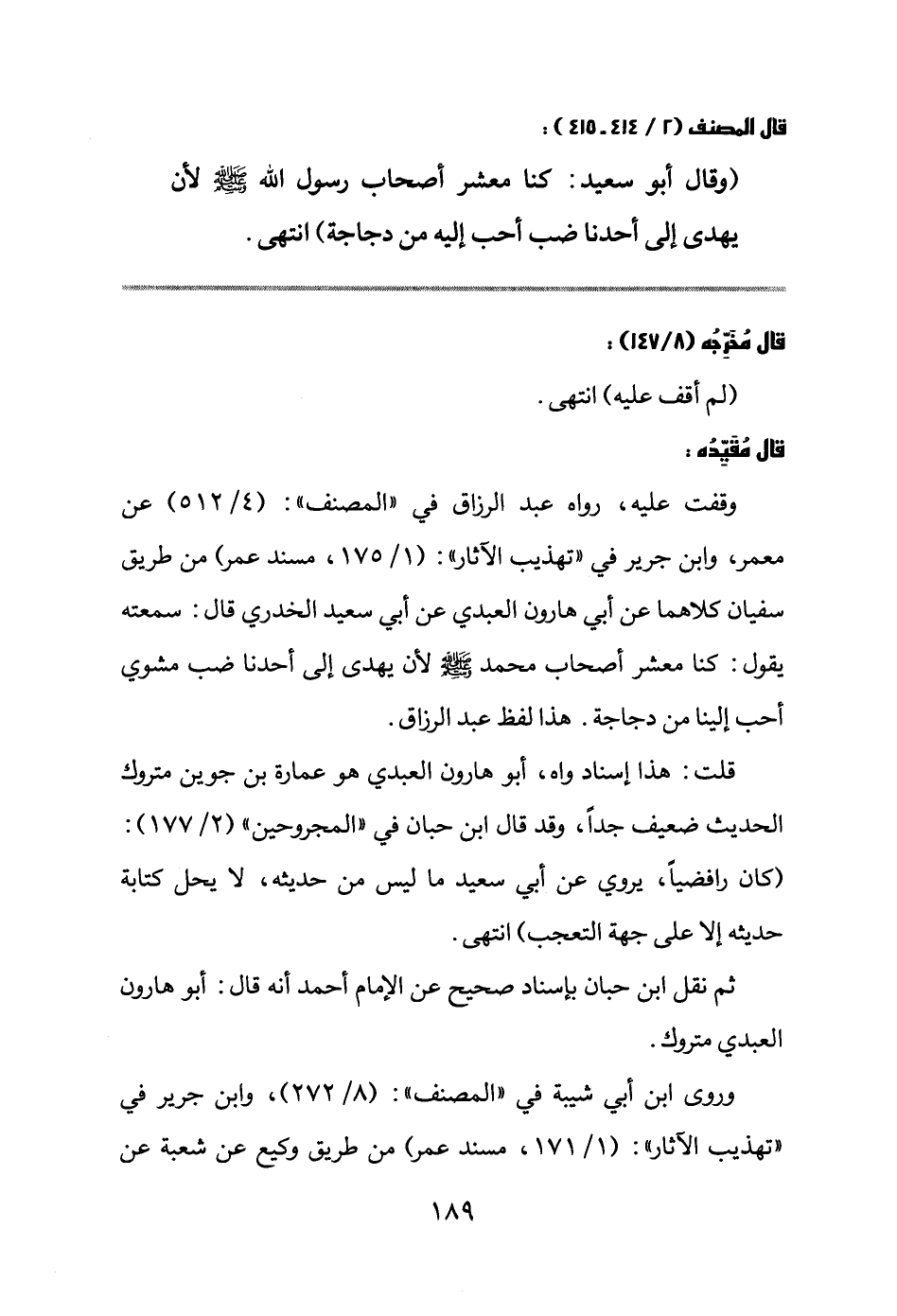 وقفت عليه، رواه عبد الرزاق في " المصنف " (4/512) عن معمر، وابن جرير في " تهذيب الآثار " (1/175، مسند عمر) من طريق سفيان كلاهما عن أبي هارون العبدي عن أبي سعيد الخدري قال: سمعته يقول: كنا معشر أصحاب محمد صلى الله عليه وسلم لأن يهدى إلى أحدنا ضب مشوي أحب إلينا من دجاجة. هذا لفظ عبد الرزاق.