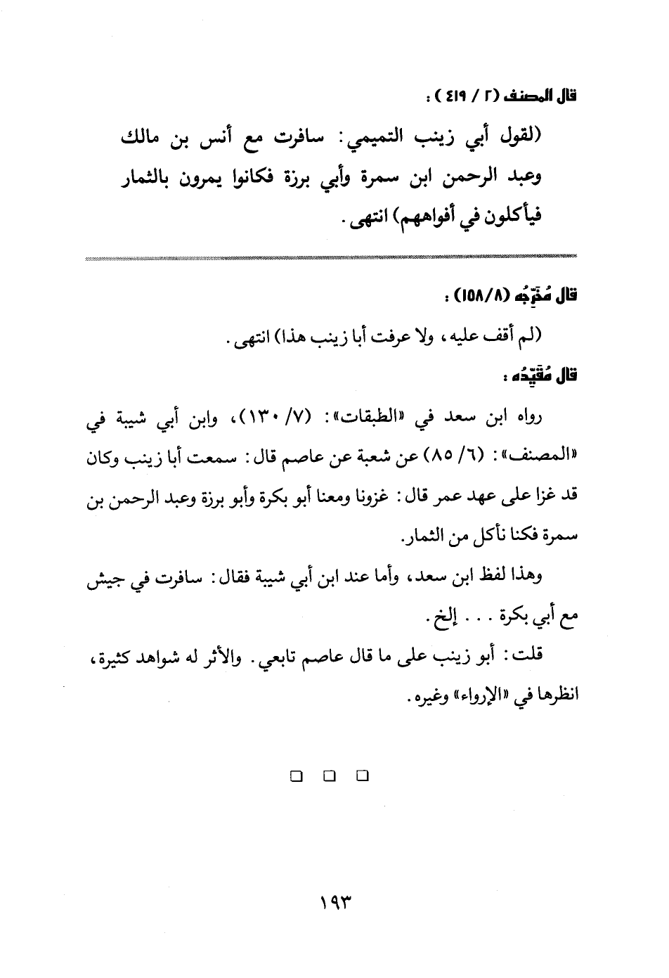 رواه ابن سعد في " الطبقات " (7/130) ، وابن أبي شيبة في " المصنف " (6/85) عن شعبة عن عاصم قال: سمعت أبا زينب وك ان قد غزا على عهد عمر قال: غزونا ومعنا أبو بكرة وأبو برزة وعبد الرحمن بن سمرة فكنا نأكل من الثمار.
