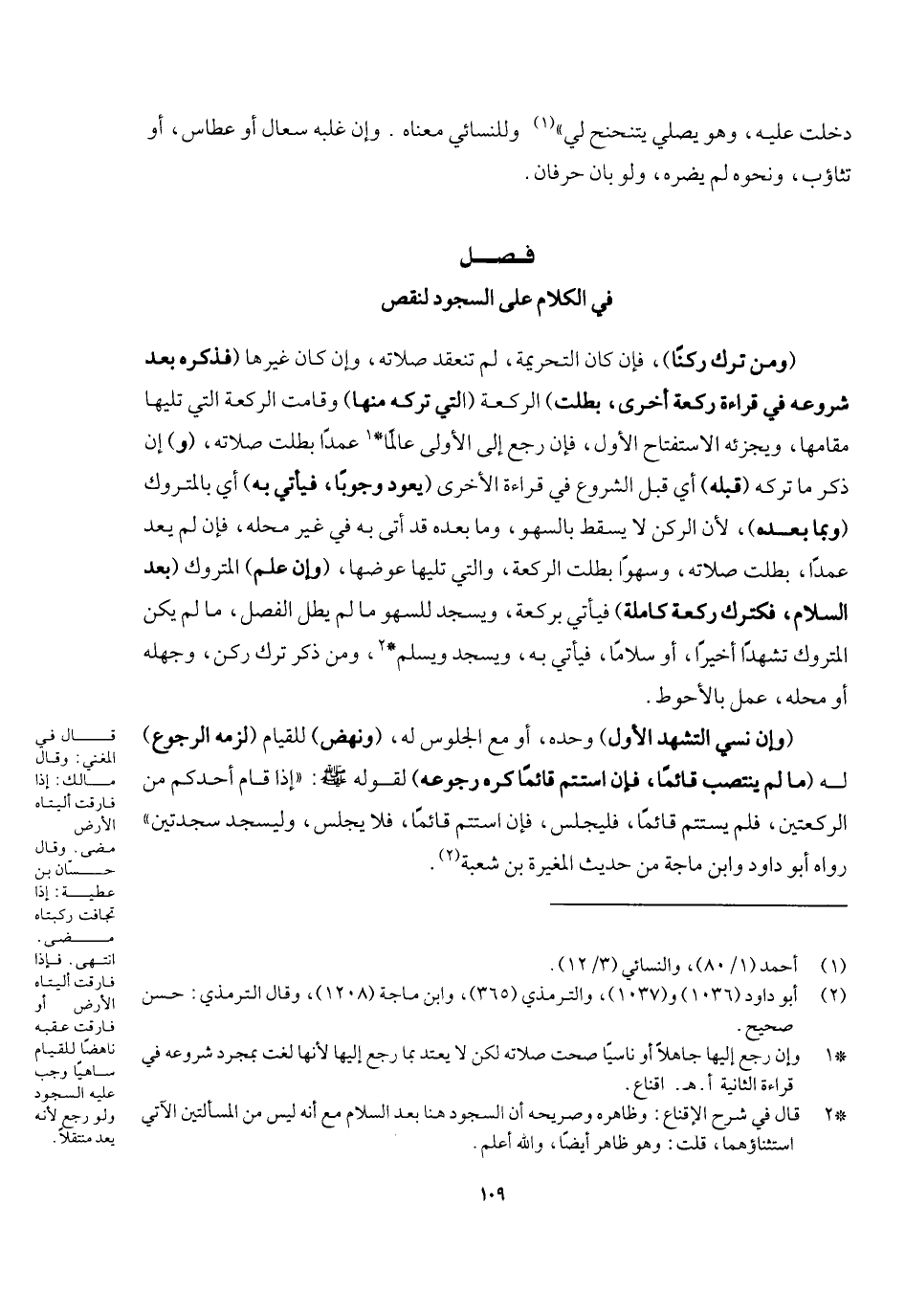 [فصل في الكلام على السجود لنقص]