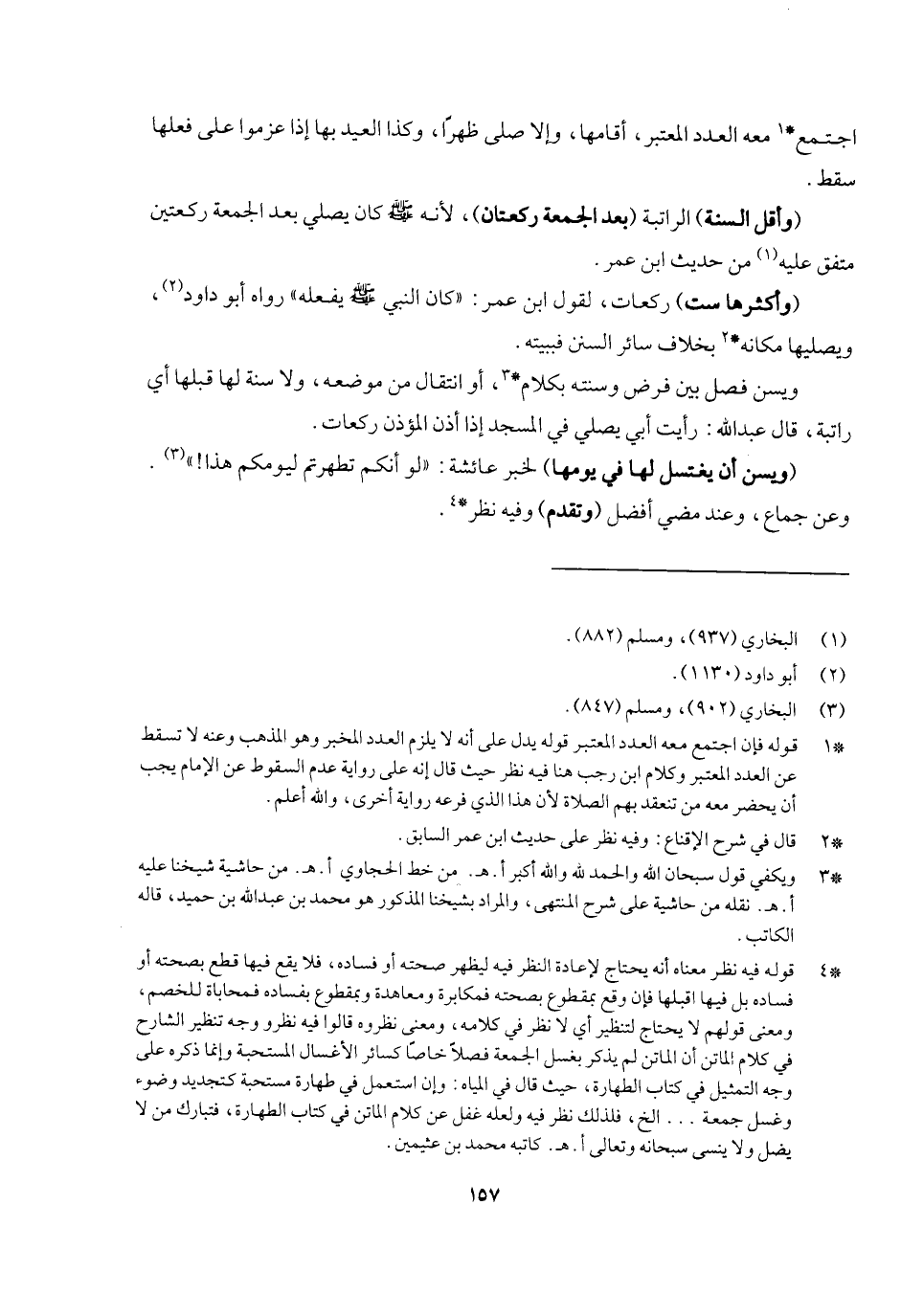 (ويسن أن يغتسل لها في يومها) لخبر عائشة «لو أنكم تطهرتم ليومكم هذا» ، وعن جماع وعند مضي أفضل (وتقدم) وفيه نظر
