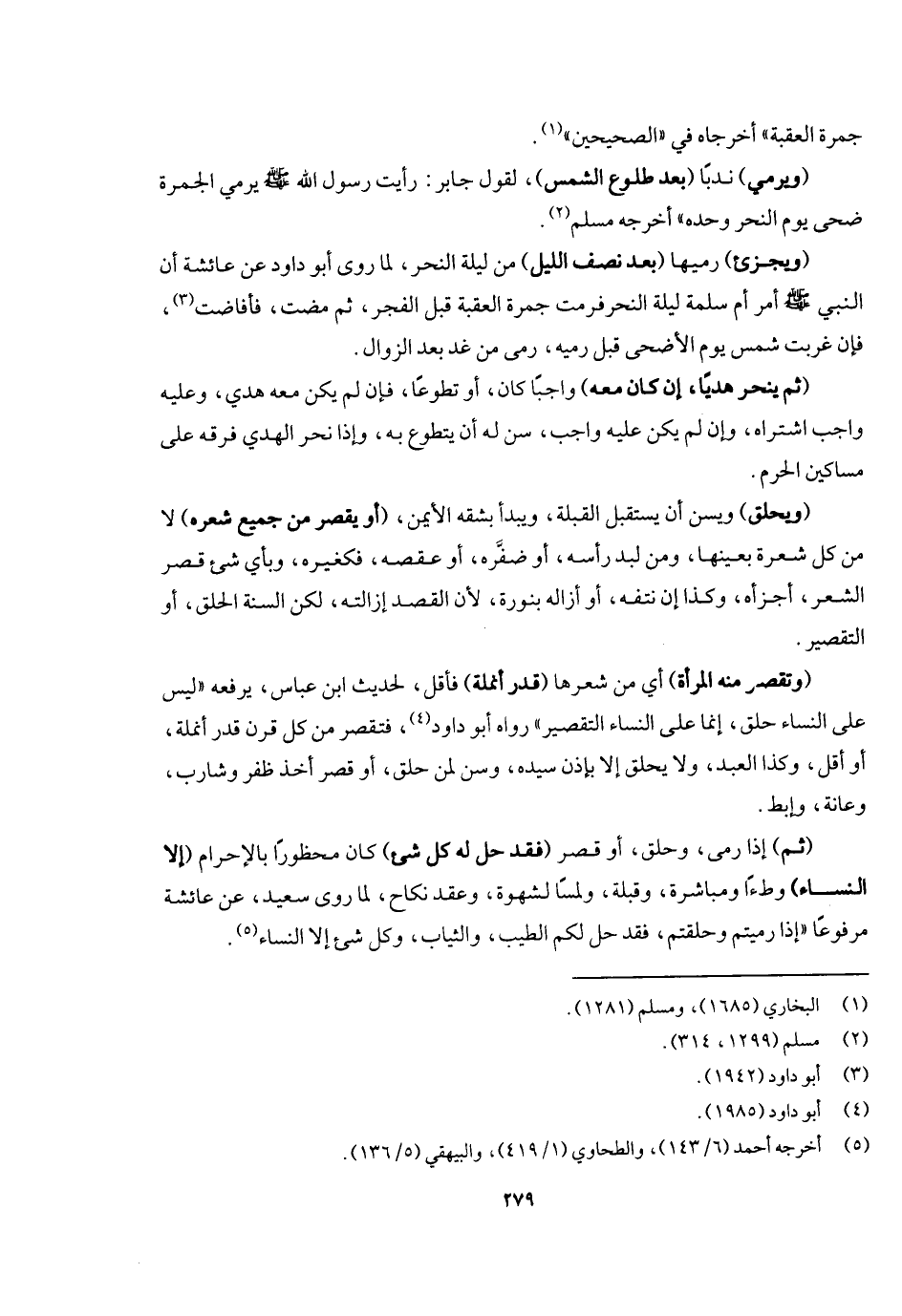 جمرة العقبة» " أخرجاه في " الصحيحين " (ويرمي) ندبا بعد طلوع الشمس) لقول جابر: «رأيت رسول الله - صَلَّى اللَّهُ عَلَيْهِ وَسَلَّمَ - يرمي الجمرة ضحى يوم النحر وحده» أخرجه مسلم، (ويجزئ) رميها (بعد نصف الليل) من ليلة النحر لما روى أبو داود عن عائشة أن النبي - صَلَّى اللَّهُ عَلَيْهِ وَسَلَّمَ - «أمر أم سلمة ليلة النحر فرمت جمرة العقبة قبل الفجر ثم مضت فأفاضت» ، فإن غربت شمس يوم الأضحى قبل رميه رمى من غد بعد الزوال.