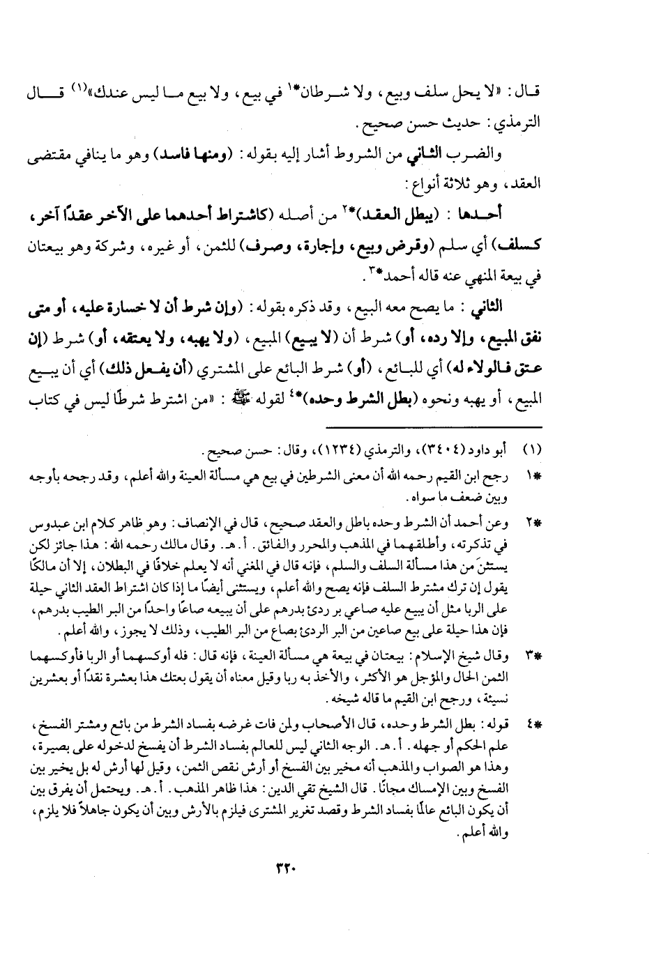 قال: «لا يحل سلف وبيع، ولا شرطان في بيع، ولا بيع ما ليس عندك» قال الترمذي: حديث حسن صحيح.