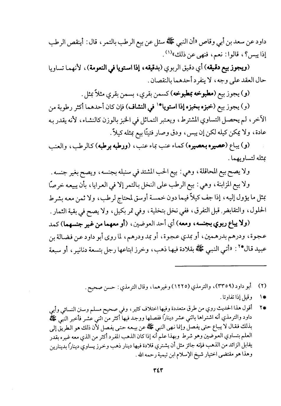 داود عن سعد بن أبي وقاص أن النبي - صَلَّى اللَّهُ عَلَيْهِ وَسَلَّمَ -: «سئل عن بيع الرطب بالتمر، قال: أينقص الرطب إذا يبس؟ قالوا: نعم، فنهى عن ذلك» .