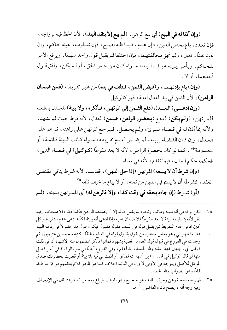 (وإن) باع بإذنهما و (قبض الثمن فتلف في يده) من غير تفريط (فمن ضمان الراهن) ؛ لأن الثمن في يد العدل أمانة، فهو كالوكيل. (وإن ادعى) العدل (دفع الثمن إلى المرتهن فأنكره ولا بينة) للعدل بدفعه للمرتهن (ولم يكن) الدفع (بحضور الراهن ضمن) العدل؛ لأنه فرط حيث لم يشهد، ولأنه إنما أذن له في قضاء مبرئ ولم يحصل، فيرجع المرتهن على راهنه، ثم هو على العدل، وإن كان القضاء ببينة لم يضمن؛ لعدم تفريطه سواء كانت البينة قائمة أو معدومة، كما لو كان بحضرة الراهن؛ لأنه لم يعد مفرطا (كوكيل) في قضاء الدين، فحكمه حكم العدل فيما تقدم؛ لأنه في معناه.