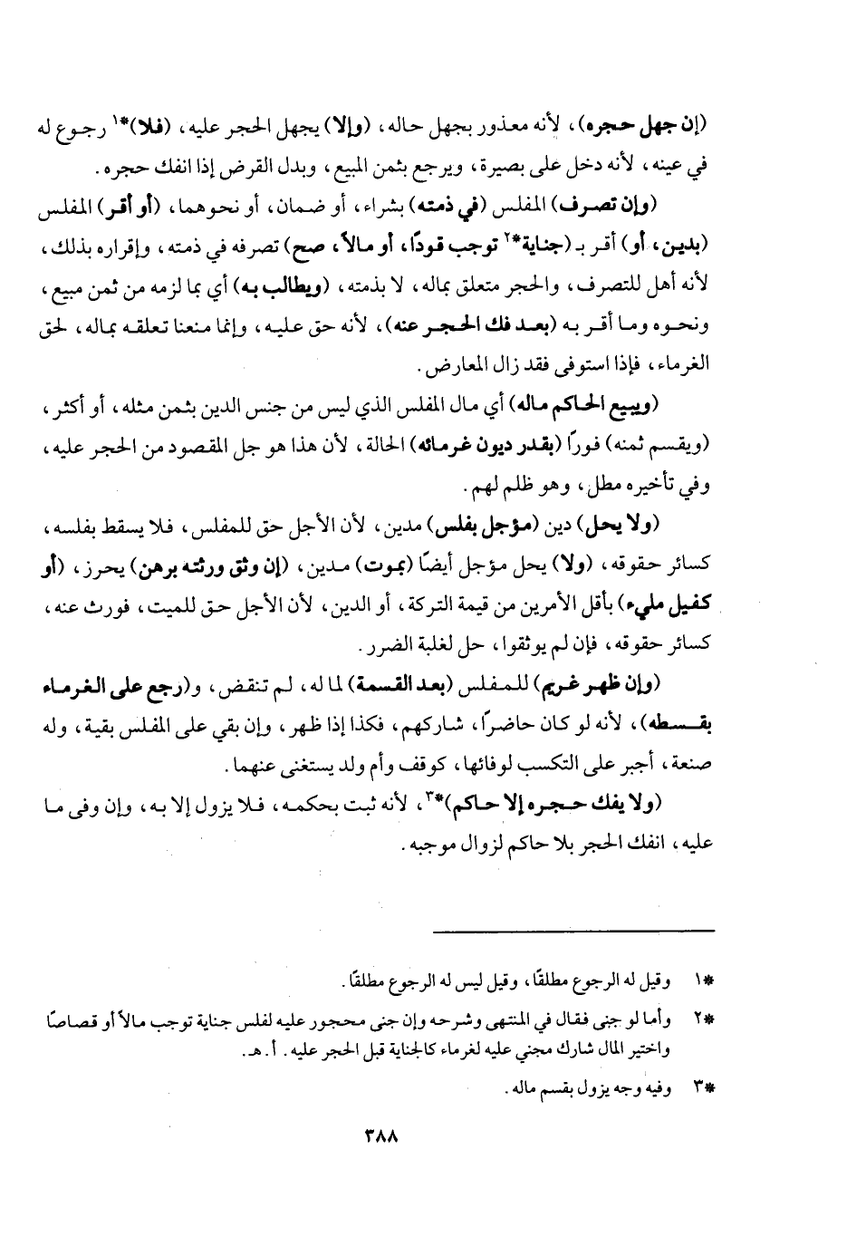 المفلس بقية، وله صنعة أجبر على التكسب لوفائها كوقف وأم ولد يستغنى عنهما. (ولا يفك حجره إلا حاكم) لأنه ثبت بحكمه فلا يزول إلا به، وإن وفى ما عليه انفك الحجر بلا حاكم لزوال موجبه.