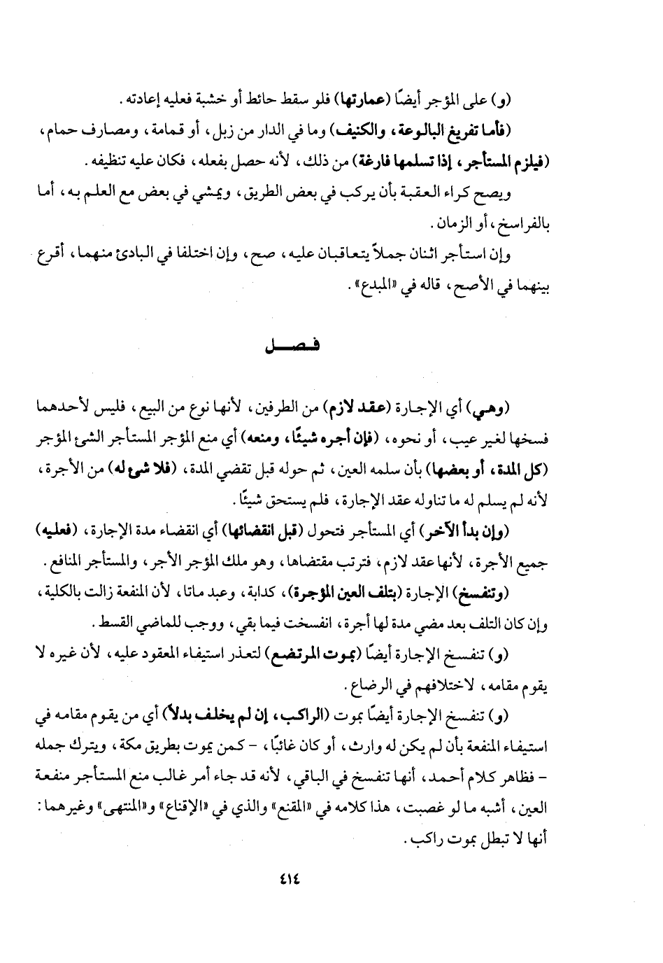 فصل (وهي) أي: الإجارة (عقد لازم) من الطرفين؛ لأنها نوع من البيع، فليس لأحدهما