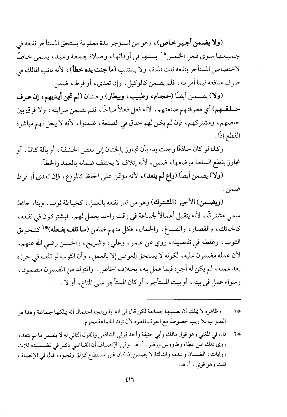 (ولا يضمن أجير خاص) وهو من استؤجر مدة معلومة يستحق المستأجر نفعه في جميعها سوى فعل الخمس بسننها في أوقاتها وصلاة جمعة وعيد، يسمى خاصا لاختصاص المستأجر بنفعه [في] تلك المدة، ولا يستنيب (ما جنت يده [من] خطأ) لأنه نائب المالك في صرف منافعه فيما أمر به، فلم يضمن كالوكيل، وإن تعدى أو فرط ضمن. (ولا) يضمن أيضا (حجام وطبيب وبيطار) وختان (لم تجن أيديهم إن عرف حذقهم) أي: معرفتهم صنعتهم؛ لأنه فعل فعلا مباحا فلم يضمن سرايته، ولا فرق بين خاصهم ومشتركهم، فإن لم يكن لهم حذق في الصنعة ضمنوا؛ لأنه لا يحل لهم مباشرة القطع إذا، وكذا لو كان حاذقا وجنت يده بأن تجاوز بالختان إلى بعض الحشفة أو بآلة كالة، أو تجاوز بقطع السلعة موضعها ضمن؛ لأنه إتلاف لا يختلف ضمانه بالعمد والخطأ. (ولا) يضمن أيضا (راع لم يتعد) ؛ لأنه مؤتمن على الحفظ كالمودع، فإن تعدى أو فرط ضمن.