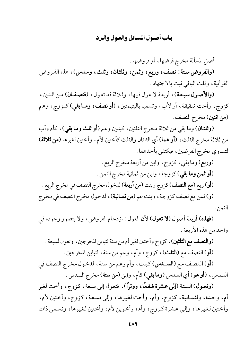 [باب أصول المسائل والعول والرد]