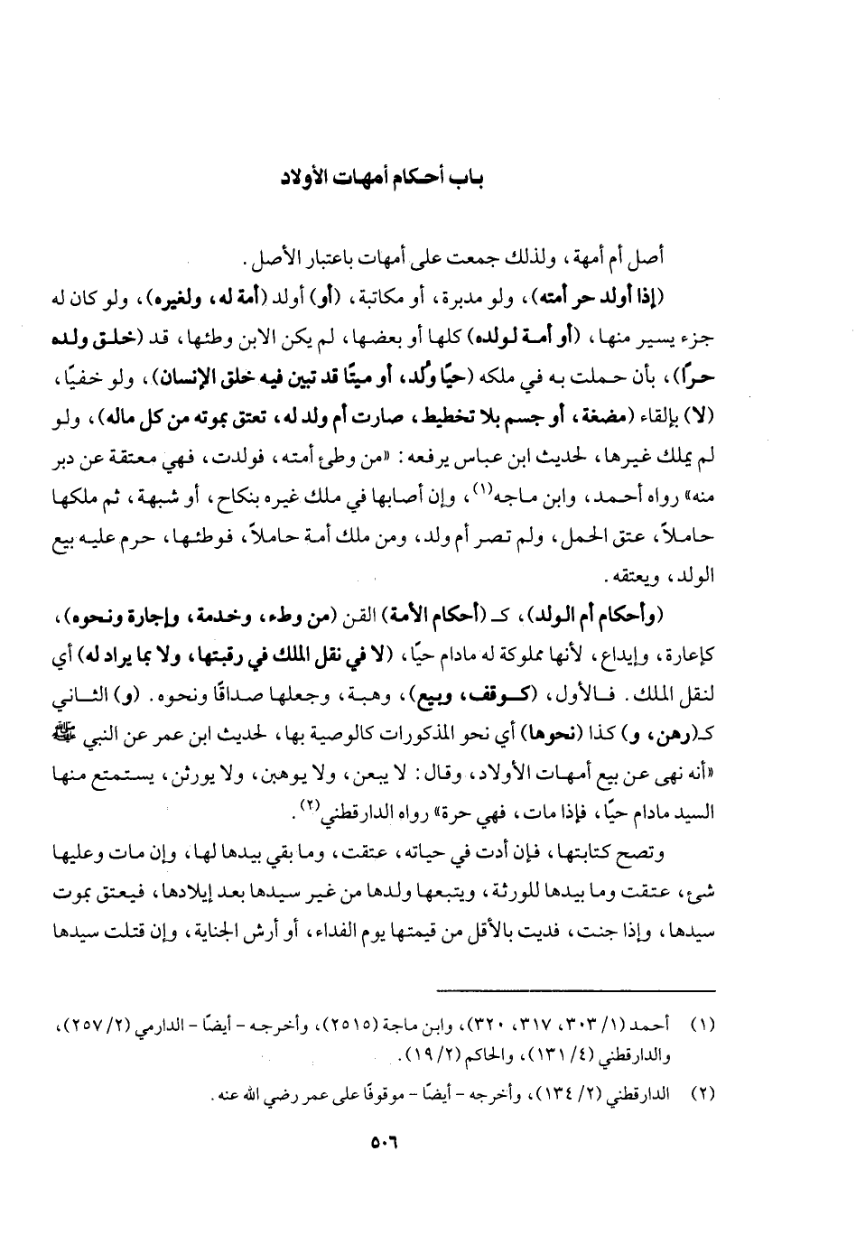[باب أحكام أمهات الأولاد]