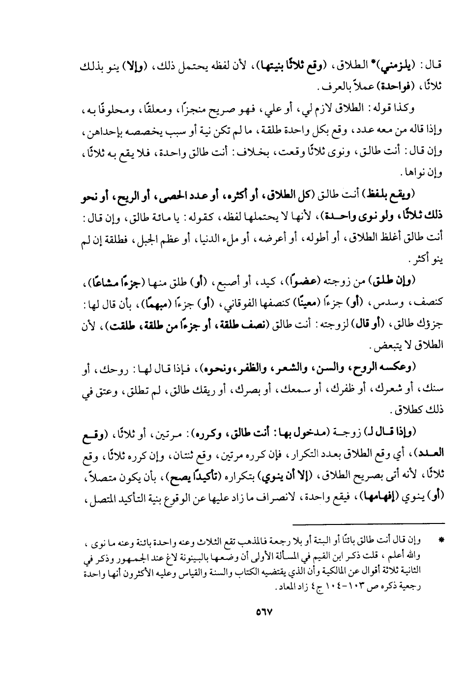 قال (يلزمني) الطلاق (وقع ثلاثا بنيتها) لأن لفظه يحتمل ذلك (وإلا) ينو بذلك ثلاثا (فواحدة) عملا بالعرف، وكذا قوله الطلاق لازم لي أو علي، فهو صريح منجزا ومعلقا ومحلوفا به، وإذا قاله من معه عدد وقع بكل واحدة طلقة ما لم تكن نية أو سبب يخصصه بإحداهن، وإن قال: أنت طالق ونوى ثلاثا، وقعت، بخلاف أنت طالق واحدة، فلا يقع به ثلاثا وإن نواها (ويقع بلفظ) أنت طالق (كل الطلاق أو أكثره أو عدد الحصى أو الريح أو نحو ذلك ثلاثا ولو نوى واحدة) لأنها لا يحتملها لفظه، كقوله يا مائة طالق. وإن قال: أنت طالق أغلظ الطلاق أو أطوله أو أعرضه أو ملء الدنيا أو عظم الجبل - فطلقة، إن لم ينو أكثر.