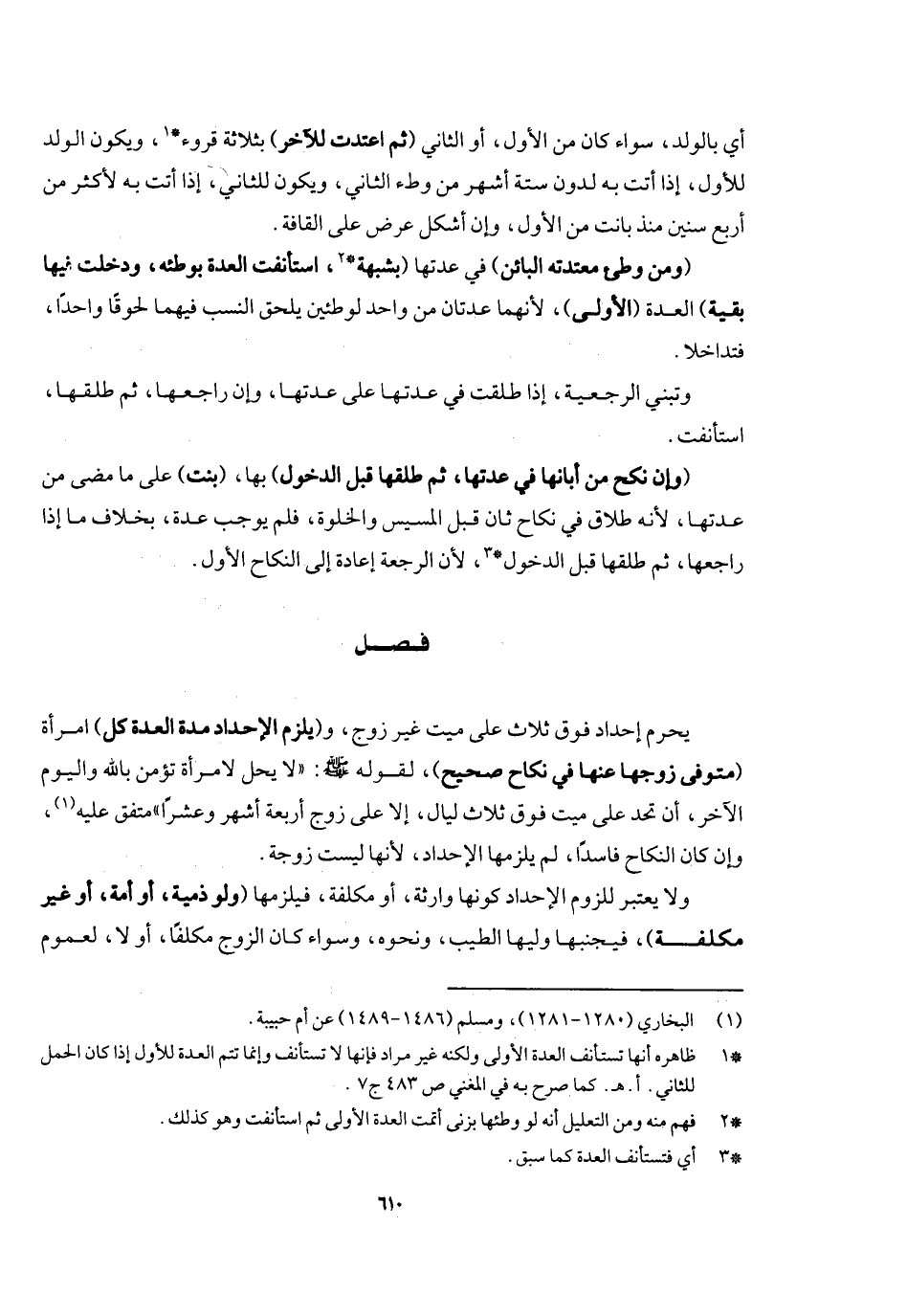 ، و (يلزم الإحداد مدة العدة كل) امرأة (متوفى زوجها عنها في نكاح صحيح) لقوله - صَلَّى اللَّهُ عَلَيْهِ وَسَلَّمَ -: «لا يحل لامرأة تؤمن بالله واليوم الآخر أن تحد على ميت فوق ثلاث ليال، إلا على زوج أربعة أشهر وعشرا» متفق عليه، وإن كان