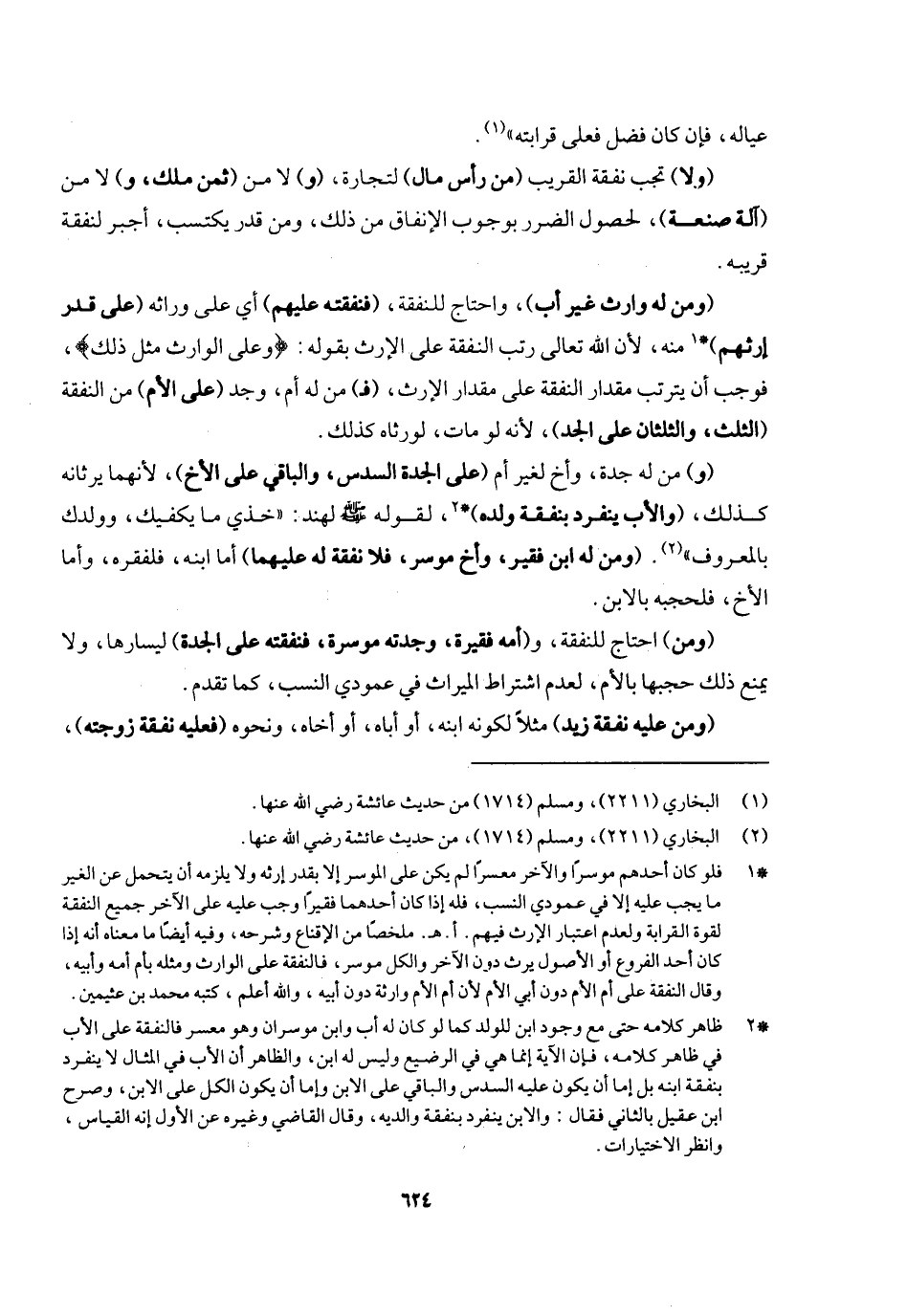 (ومن له وارث غير أب) واحتاج للنفقة (فنفقته عليهم) أي: على وارثه (على قدر إرثهم) منه؛ لأن الله تعالى رتب النفقة على الإرث بقوله: {وَعَلَى الْوَارِثِ مِثْلُ ذَلِكَ} [البقرة: ٢٣٣] ، فوجب أن يترتب مقدار النفقة على مقدار الإرث، (فـ) من له أم وجد (على الأم) من النفقة (الثلث والثلثان على الجد) لأنه لو مات لورثاه كذلك، (و) من له جدة وأخ لغير أم (على الجدة السدس والباقي على الأخ) لأنهما يرثانه كذلك (والأب ينفرد بنفقة ولده) لقوله - صَلَّى اللَّهُ عَلَيْهِ وَسَلَّمَ - لهند: «خذي ما يكفيك وولدك بالمعروف» . (ومن له ابن فقير وأخ موسر فلا نفقة له عليهما) أما ابنه فلفقره، وأما الأخ فلحجبه بالابن.