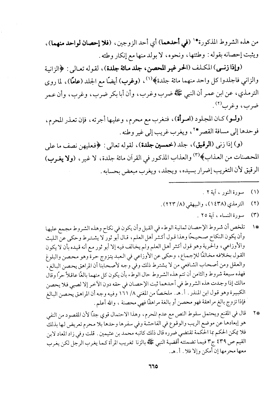 {الزَّانِيَةُ وَالزَّانِي فَاجْلِدُوا كُلَّ وَاحِدٍ مِنْهُمَا مِائَةَ جَلْدَةٍ} [النور: ٢] ، (وغرب) أيضا مع الجلد (عاما) لما روى الترمذي «عن ابن عمر أن النبي - صَلَّى اللَّهُ عَلَيْهِ وَسَلَّمَ - ضرب وغرب، وأن أبا بكر ضرب وغرب، وأن عمر ضرب وغرب» ، (ولو) كان المجلود (امرأة) فتغرب مع محرم وعليها أجرته، فإن تعذر المحرم فوحدها إلى مسافة القصر، ويغرب غريب إلى غير وطنه.