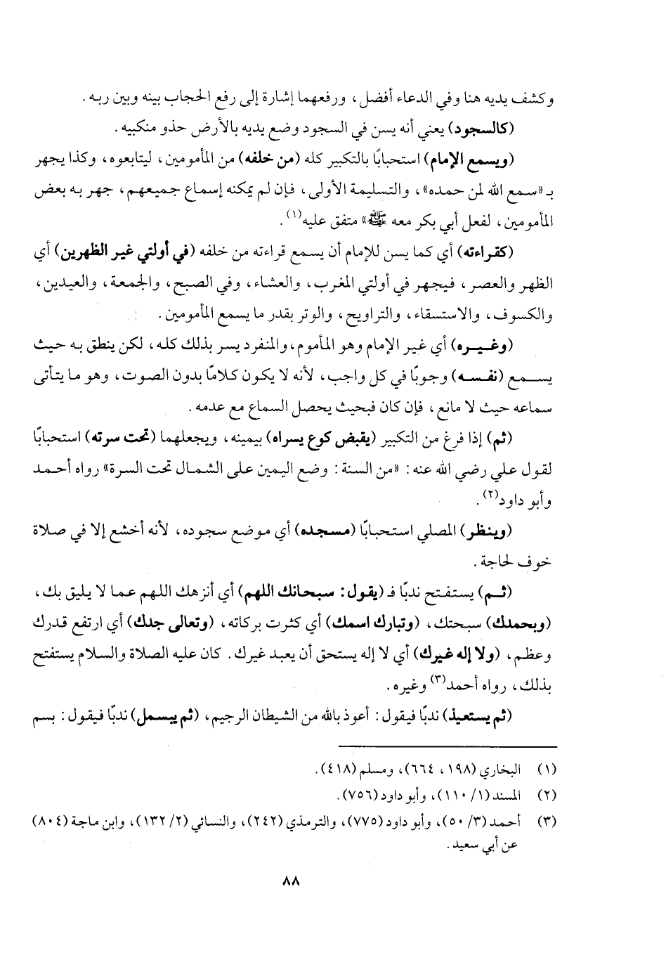 (ثم) يستفتح ندبا فـ (يقول: سبحانك اللهم) أي أنزهك اللهم عما لا يليق بك (وبحمدك) سبحتك، (وتبارك اسمك) أي كثرت بركاته (وتعالى جدك) أي ارتفع قدرك وعظم، (ولا إله غيرك) أي لا إله يستحق أن يعبد غيرك. كان - عَلَيْهِ الصَّلَاةُ وَالسَّلَامُ - يستفتح بذلك، رواه أحمد وغيره. (ثم يستعيذ) ندبا فيقول: أعوذ بالله من الشيطان الرجيم، (ثم يبسمل) ندبا فيقول: بِسْمِ